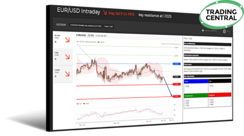 Trading Central是世界上分布广泛、实时高品质的技术分析信息源,通过市场数据终端(彭博社、汤森路透社、道琼斯等)以及主要投资和经纪平台为全球数百万投资者提供涵盖主流货币对、贵金属、商品、股指等投资战略和专业数据分析报告,每种产品每日策略更新10次,帮助客户及时发现投资机会。