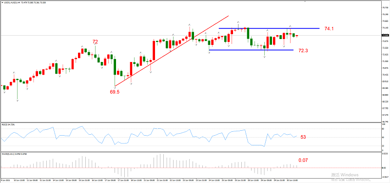 图3,USOIL 2021年7月合约,07月01日 H4周期