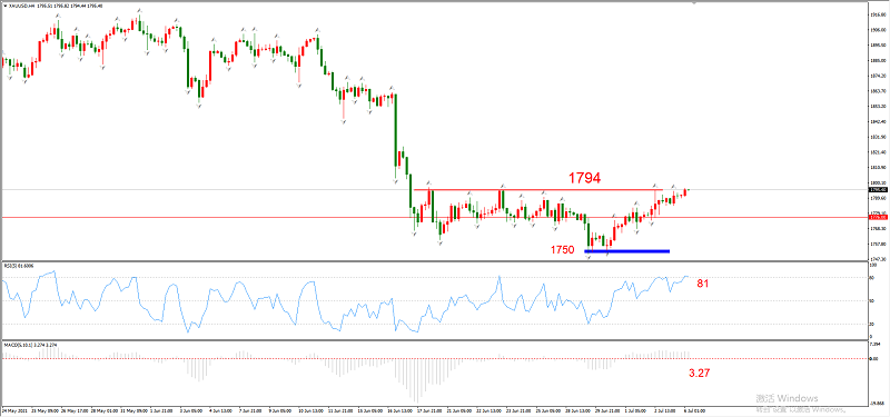 短线技术面:指标显示,目前处于明显的多头走势中,甚至出现了超买的迹象。结构来看,形成震荡区间(1750~1794),任何一方被突破,都将形成单边走势。目前市价运行于1794附近,以震荡思维来看,今日将遇阻回落。