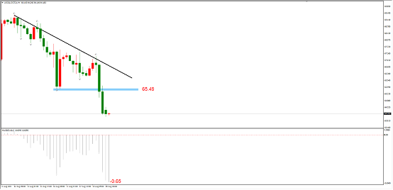 结构上看,10月合约的下降趋势线表现良好,前期支撑位65.49已经被有效跌破,下方没有显著支撑,预计原油将迎来持续性下跌走势;
