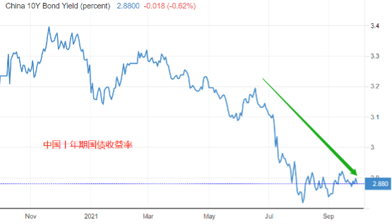 从上图可以看出,中国十年期国债收益率2.88%,依旧处于下行趋势,近期虽然在底部震荡,但没有空转多的迹象。由此推断,恒生指数近期很那有强势表现,即便出现偶尔的长阳线,也较难持久。