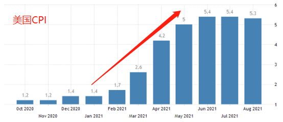 美国CPI已经连续6期超过原定的美联储调控目标2%;连续5期超过4%;连续4期超过5% 。对于美国消费者来说,经济层面感受最深的就是物价上涨。物价上涨的含义是货币对内贬值,而低于货币贬值的常用手段,就是买入黄金这类避险资产。