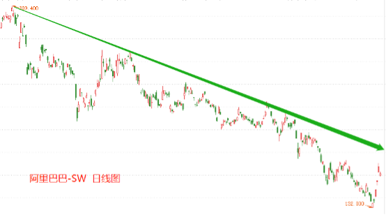 由于政策冲击,近段时间,中国互联网类股票遭受严重冲击,阿里巴巴、百度、京东等知名个股均出现显著下跌。自中期最高点至最低点计算,阿里巴巴(港股)累计下跌54.90%、百度(美股)累计下跌59.61%、京东(美股)累计下跌39.87%,均超过或接近腰斩。由于港股市场不存在百度和京东这两只股票,所以我们以阿里巴巴为例来进行剖析。