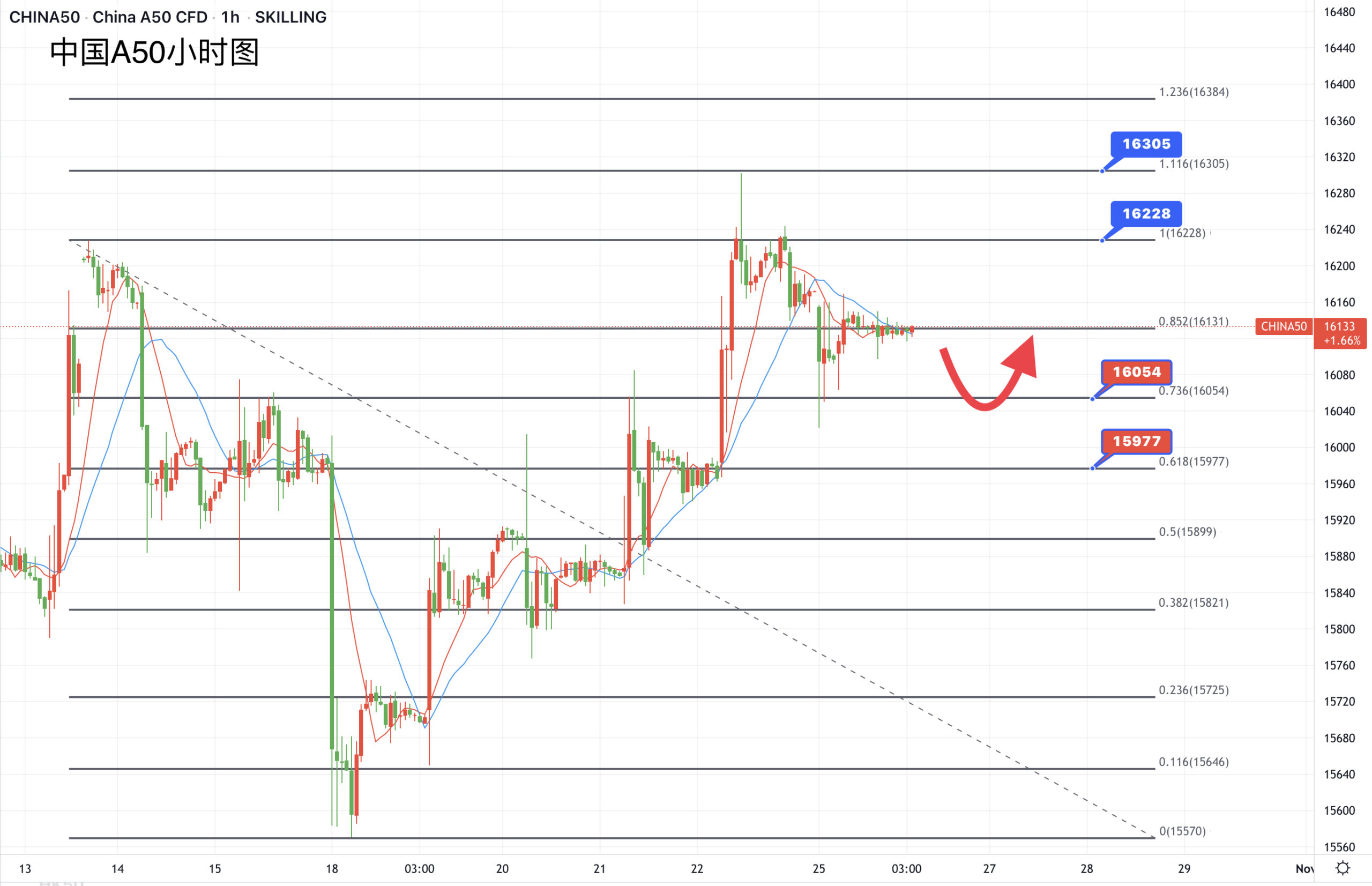 CHI50昨日在近期高位附近收平,但今早反弹至16200上方再测高位,如果可以成功上破上周高位在16316,意味着16400上方的空间被打开,相反如果高位遇阻则可能重新测试16000关口支撑。