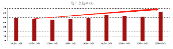 显而易见,负债率正稳步提高。最新值62.77%,虽然大幅高于2013年的46.76%,但依旧处于相对健康水平。