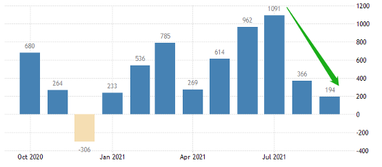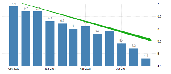 美国劳动力市场持续改善,失业率已经跌至5%(充分就业线)以下。在美国高通胀的局面下,美联储之所以能够保持宽松货币政策的“定力”,主要就是担忧失业率居高不下。现如今失业率回归正常水平,大大强化了市场对周四美联储宣布缩减每月购债的预期。