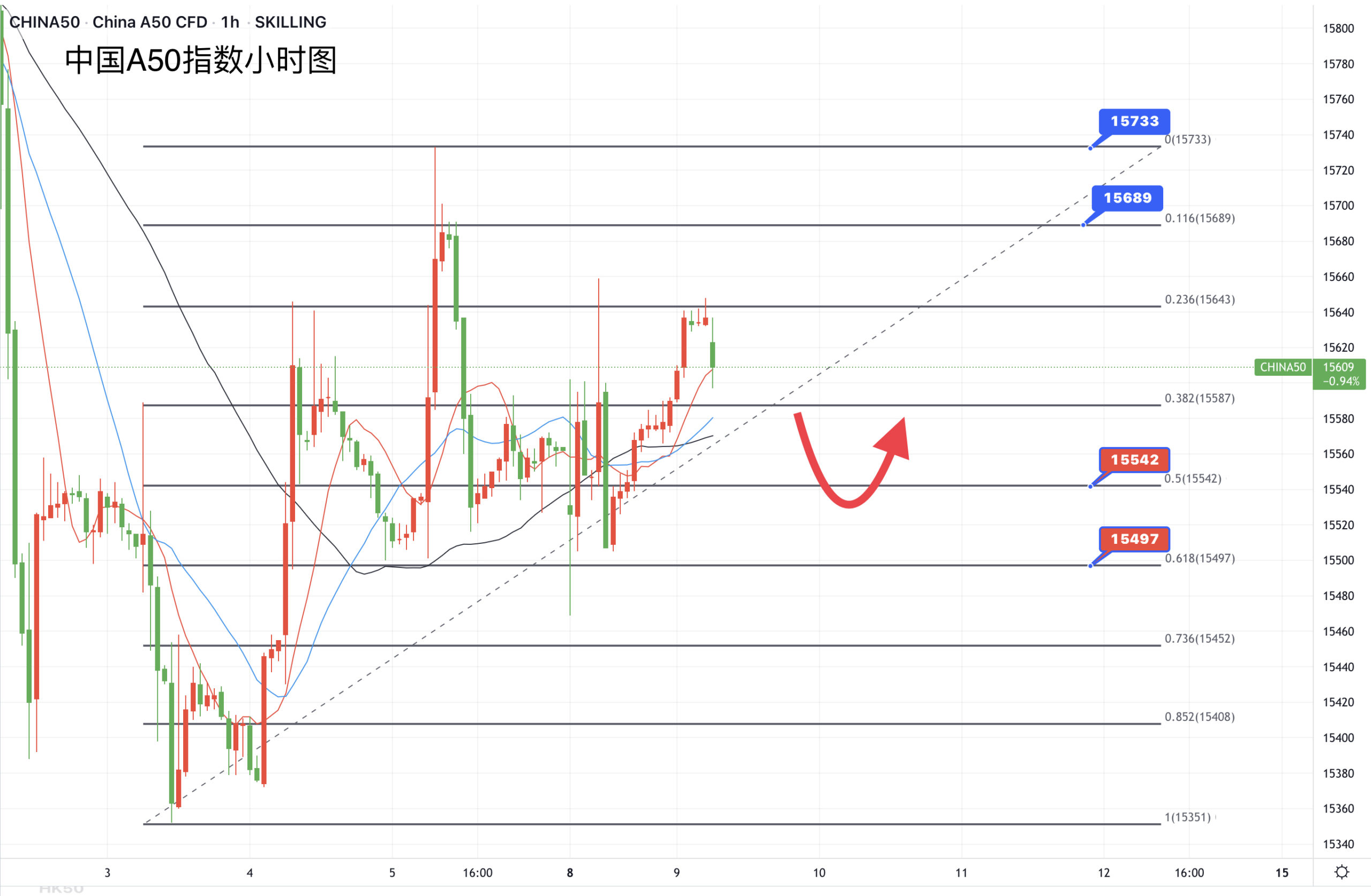 六中全会召开期间利好市场氛围,CHI50昨日反弹回到15600之上,录得三连涨之后,10日均线目前是妨碍上行的关键,除非突破后可以看15757/15847阻力,但如果遇阻则可能回到15400下方。