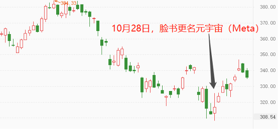 脸书CEO扎克伯格是第一个对元宇宙做出具体行动的人,其在10月28日宣布将脸书更名为元宇宙(Meta),之后Meta的股价由跌转涨,截止目前,累计涨幅接近10%,可见市场对元宇宙概念的追捧。