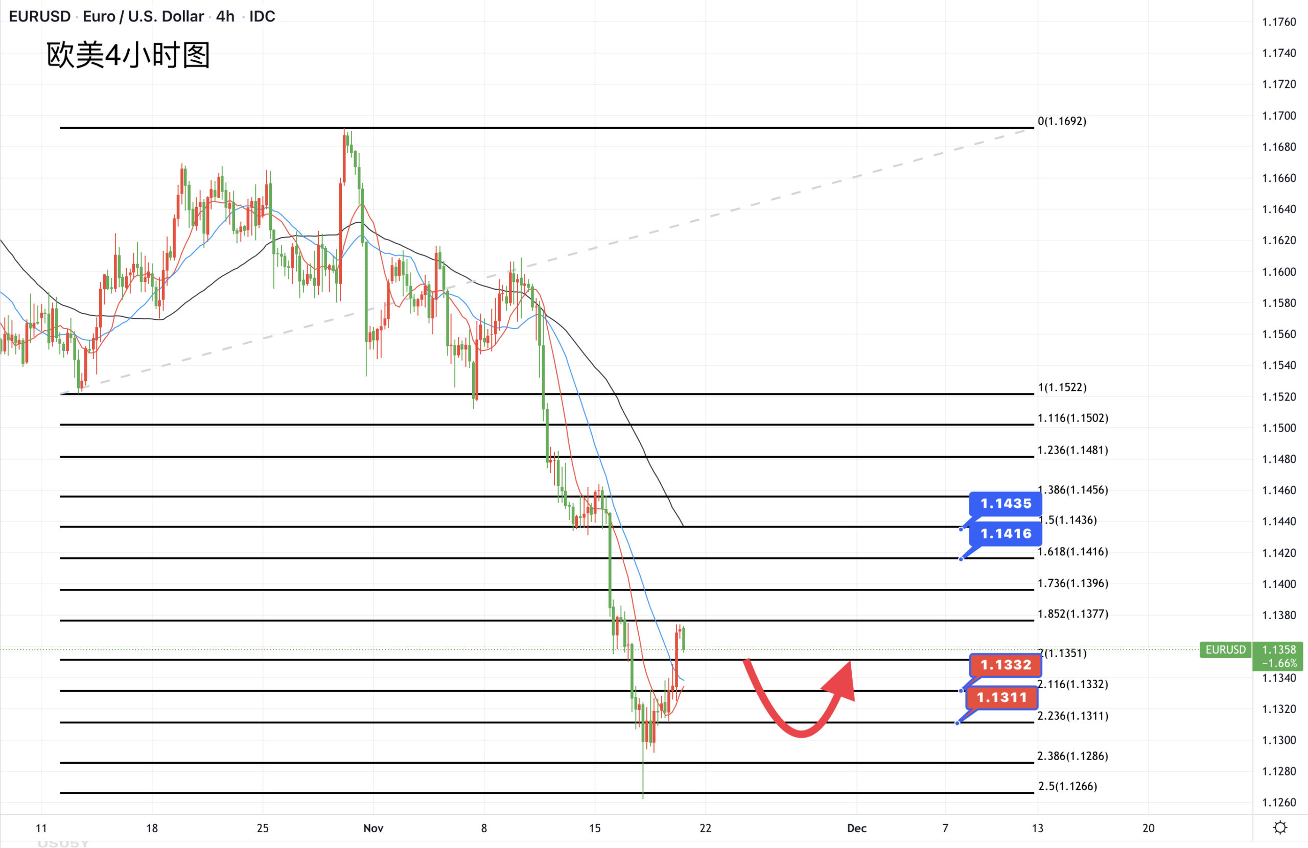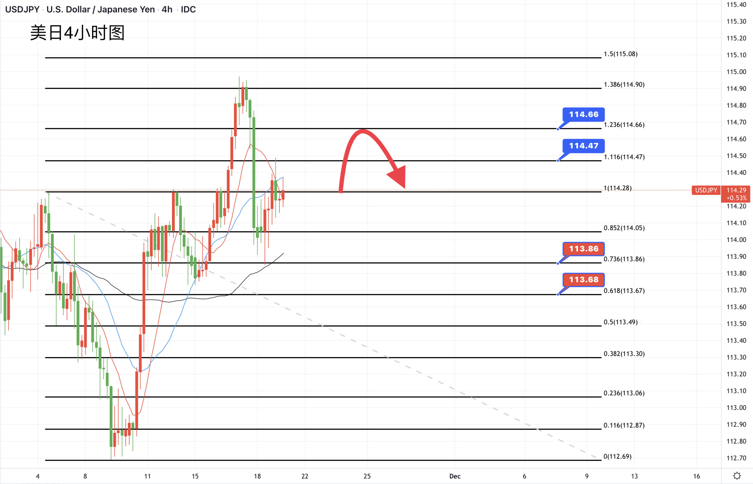 今早日本公布10月核心CPI年率维持在0.1%的增长,不过市场关注日本新政府今天将公布经济刺激方案,刺激规模或高达6900亿美元,看具体方案是否有机会刺激日元。美元兑日元昨日盘中触及日图均线支撑后回升,并因此守在114关口之上,所以仍可看反弹的推进。