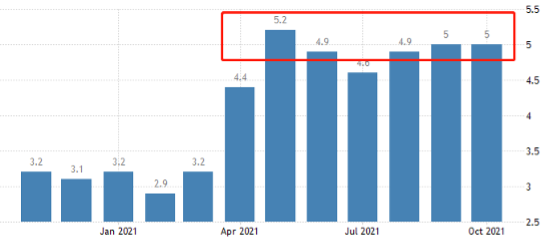 和全球其它经济体一样,南非也遭受着高通胀的困扰。10月份CPI为5%,处于恶性通胀的状态,好在最近7个月的CPI没有进一步上升,保持相对稳定。高通胀之下,中央银行情绪与紧缩货币政策,南非央行也不例外。11月份,南非央行将基准利率从3.5%调高至3.75%,透露出清晰的紧缩货币政策信号。考虑到美联储仍处于缩减每月国债的阶段(远未到加息的条件),所以南非兰特兑美元升值存在货币层面的支撑。