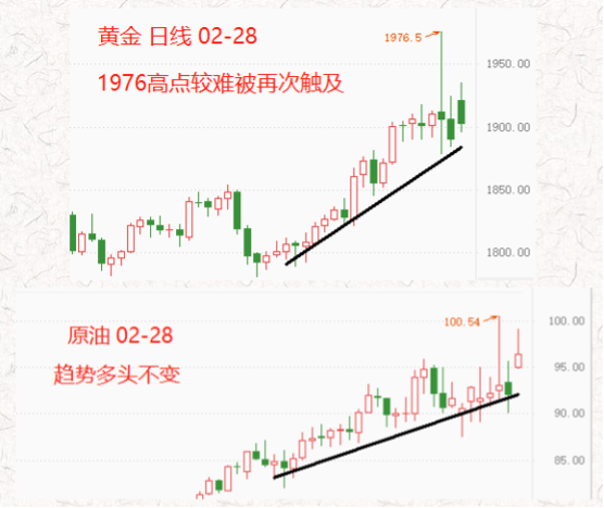 俄乌冲突:2月27日,俄罗斯总统在与国防部长和总参谋长的会面中表示:西方对俄罗斯不仅在经济上进行遏制,而且某些领导人的发言越来越具有侵略性,因此命令俄罗斯核力量进入特殊战备状态。这使得俄乌冲突进一步升级,金融市场避险显著升温,黄金和原油在今日亚洲盘迅速上涨,但未突破上周四高点。白宫对俄罗斯此举表态称:不排除对俄罗斯能源部门实施新的制裁。俄罗斯石油和天然气主要销往欧洲,其中以德国、意大利为最大消费国。美国单方面的制裁或许不会引起能源市场严重的供需不平衡,但如果德国、意大利等欧洲国家加入对“俄罗斯能源部门”的制裁,则极有可能触发原油和天然气价格的大幅上涨。另外,俄罗斯和乌克兰已经在筹备谈判,地点在白俄罗斯东南部的戈梅利州,距离莫斯科567公里,距离基辅222公里。如果双方能够达成停火协议,则关于“核战备”、“能源部门制裁”等话题的讨论将消失,避险情绪会急剧降温。当然,这种情况出现的概率极低,因为俄乌双方都不肯让步。市场主流观点认为,本次谈判更像是乌克兰的“缓兵之计”,为美国、欧洲等的军事援助提供运输时间。如果最终谈判无果而终,则金融市场避险情绪继续升温,黄金和原油还将维持当前强势状态。