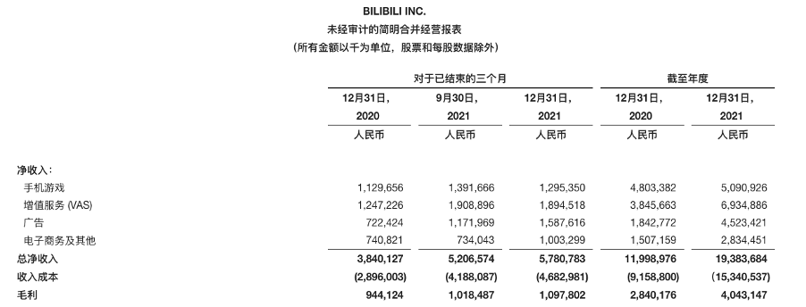 从最新财报主要业务的表现好坏参半,增值服务仍是主要收入来源,全年收入达69亿元,比2020年增长了80%,得益于付费会员计划、直播服务和其他服务的用户数量的增加。