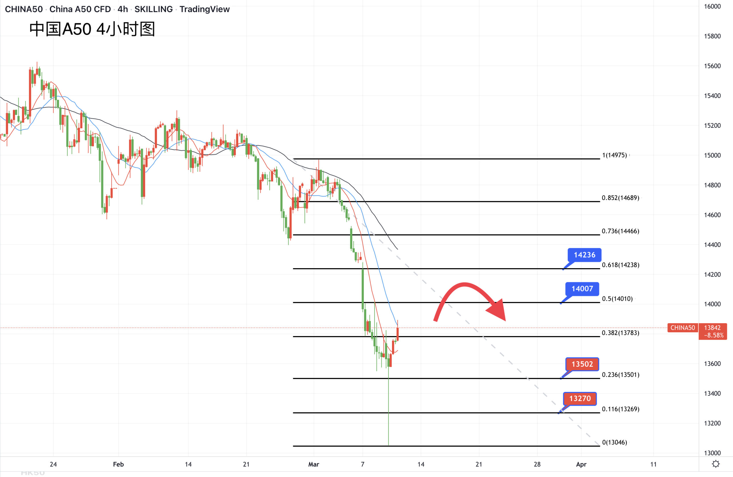 A50指数昨日下探底部之后尾盘大幅抽升,基本收于平盘附近,今早也跟随外围情绪有回升站上13800,如果日内能收高于该位,有助于信心跟进,目前阻力看13948/14101范围。