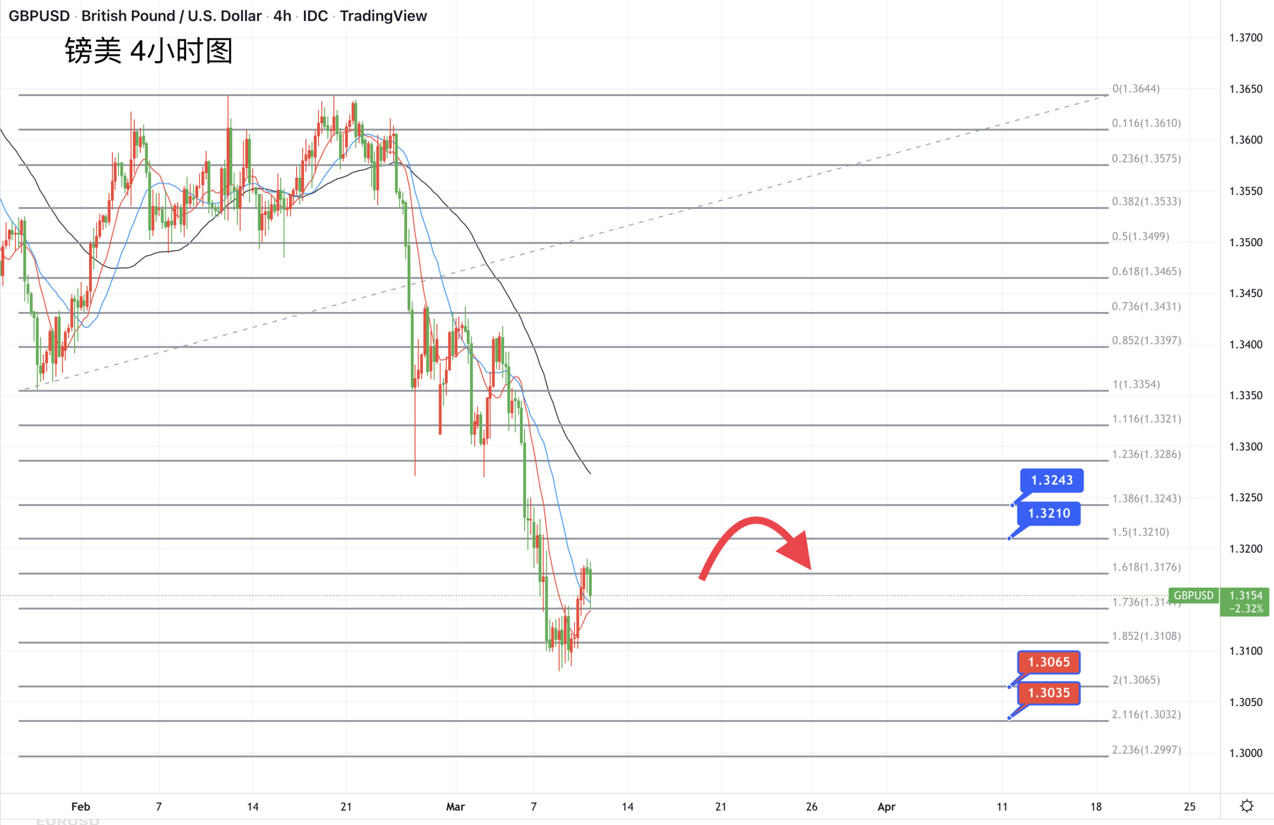 英镑兑美元止步四连跌之后站稳1.31上方,今早在昨日高位1.3189处止步,暂时可能受到该位的妨碍,但如果市场情绪仍在改善,汇价有机会继续上望1.32或更高水平。