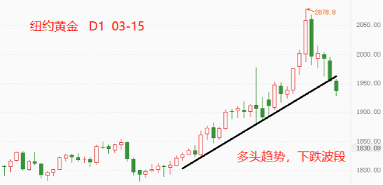 转折点:俄乌战争在2月24日正式开始,当日黄金开盘价1909,最高价1974美元。转折点出现在3月9日,黄金最高触及2058,长阴线收盘,收盘价1991美元。至今日3月15日,黄金最新价1929美元,已经低于俄乌开战当日最高点1974,且距离当日开盘价1909仅剩20美金。值得注意的是,3月9日转折点当天,俄罗斯和乌克兰的谈判并没有实质性进展,仅有美国禁止进口俄罗斯的石油的消息爆出(该消息仅对原油有影响)。 时至今日,俄罗斯和乌克兰之间也没能达成一致协议,因为双方在克里米亚、卢甘斯克、顿涅茨克地区的利益存在根本分歧。可以看出,事件驱动类行情,行情转折的点的出现并不以事件的转折为基准,而是以主力资金的退场为基准。主力资金的想法是无法捉摸的,我们只能依照技术面变化研判临界点的形成。