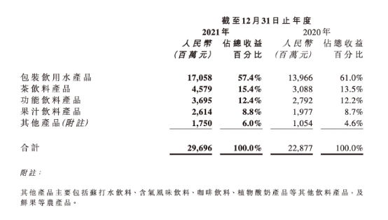 其他细分业务去年收入增幅更为显著,其中茶饮料产品去年贡献收入按年增长48.3%;功能饮料产品收入增长32.3%;果汁饮料产品增长32.2%。另外包括梳打水、咖啡、植物酸奶等饮料及鲜果等其他产品业务,全年增长66%。