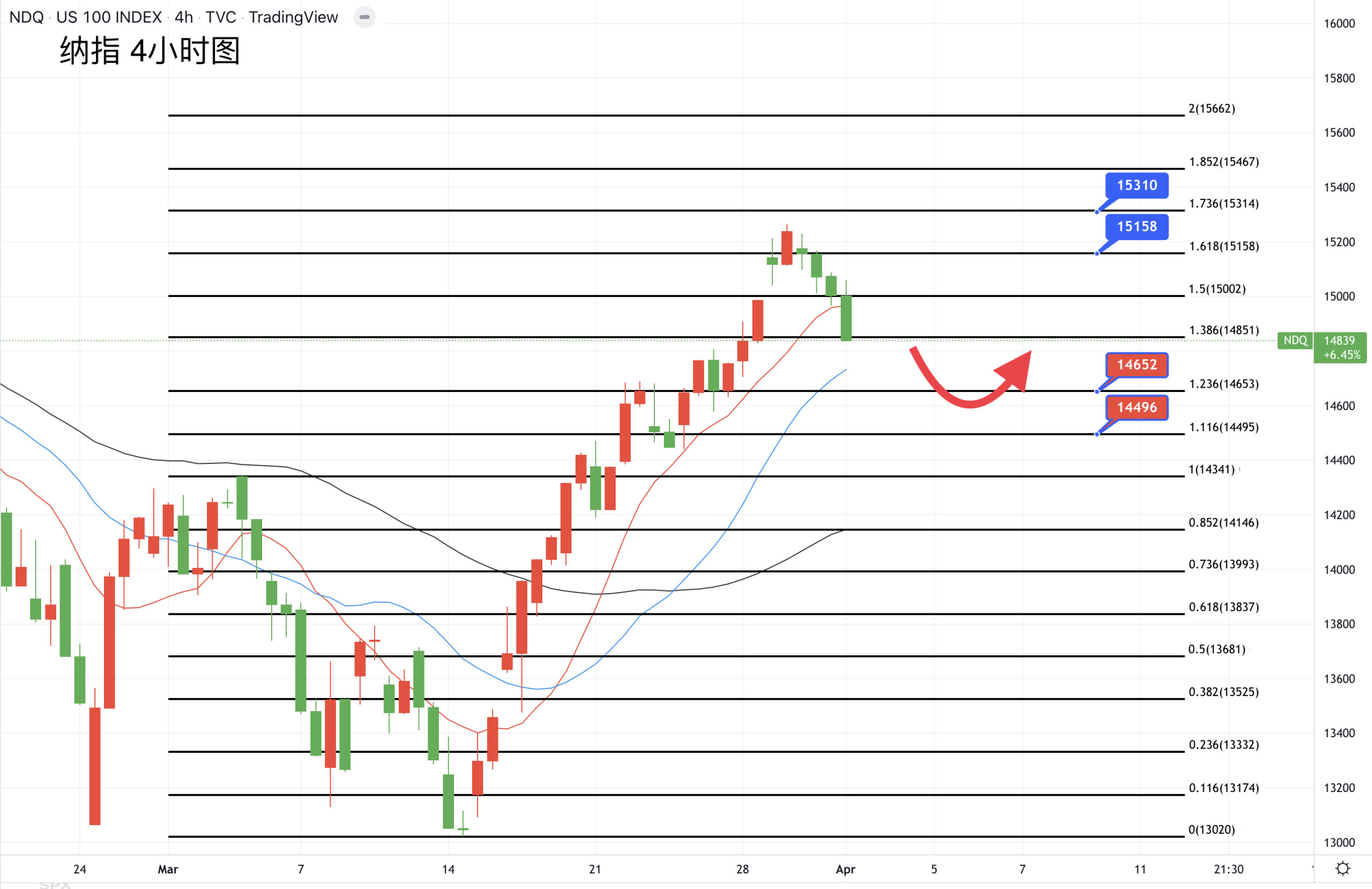 纳斯达克综合指数昨日下跌1.5%,以季度计未能避免两年来最差表现,市场受到美国物价压力忧虑的指引,今晚继续聚焦美国非农,如果符合或超过预期都会支持美联储升息举动,表明纳指可能继续在15000关口下方承压。