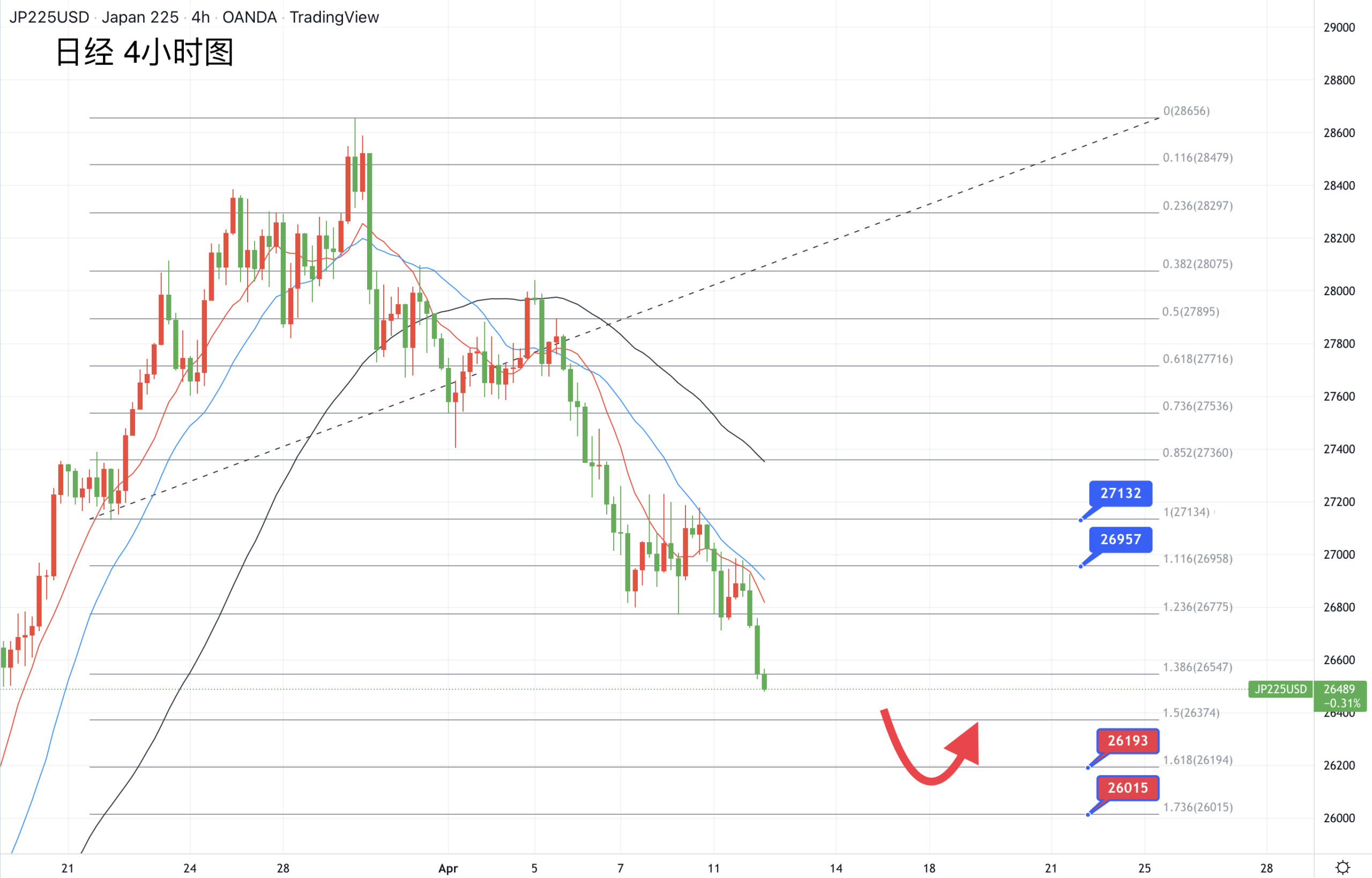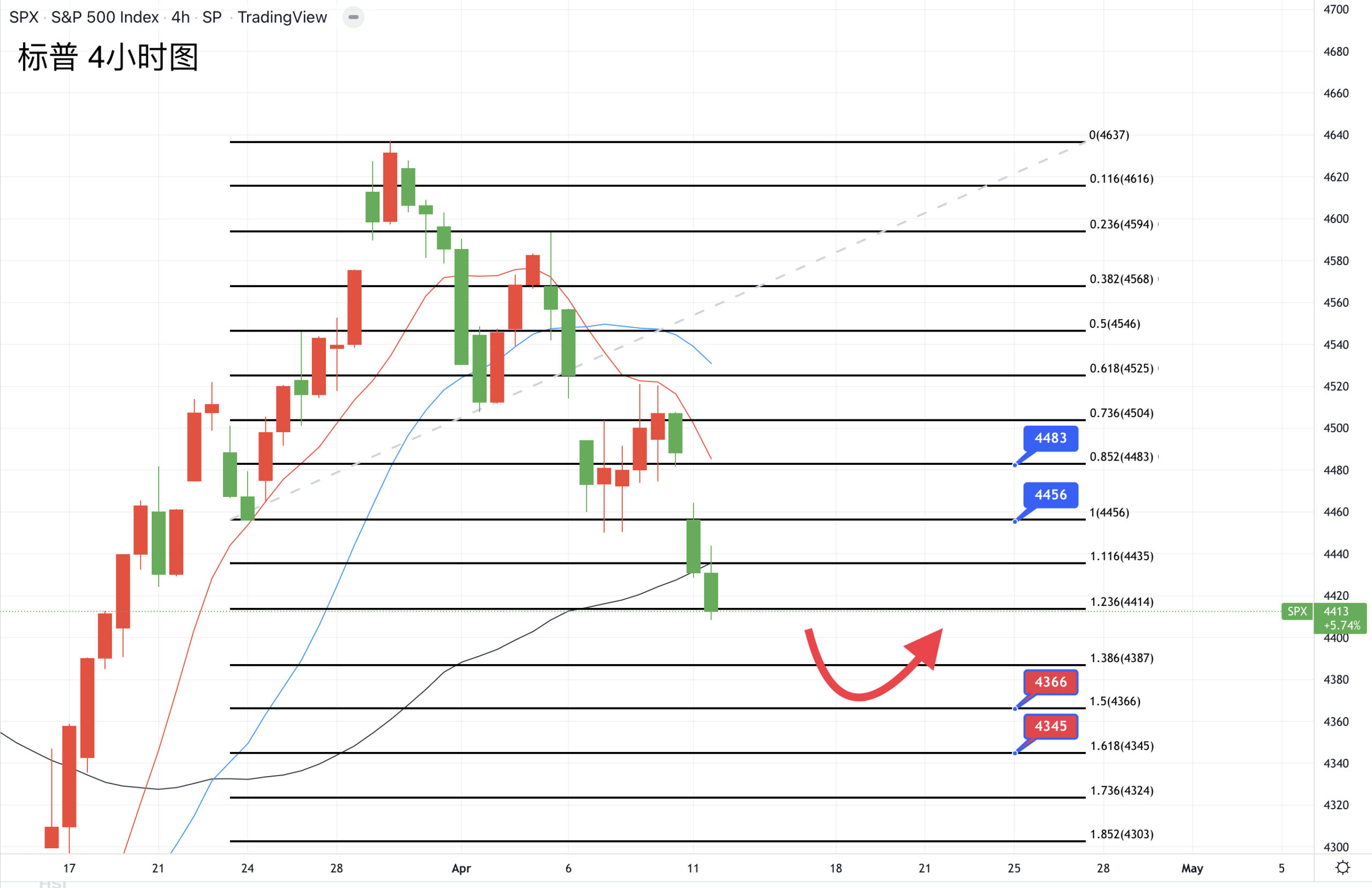 标普500指数昨日下跌1.7%后,今早进一步下探3月18日以来的低位,技术上在20日均线遇阻后极大回落,市场情绪围绕美联储鹰派政策而展开,唯有看今晚CPI公布后市场情绪是否会有调整缓和部分跌势。