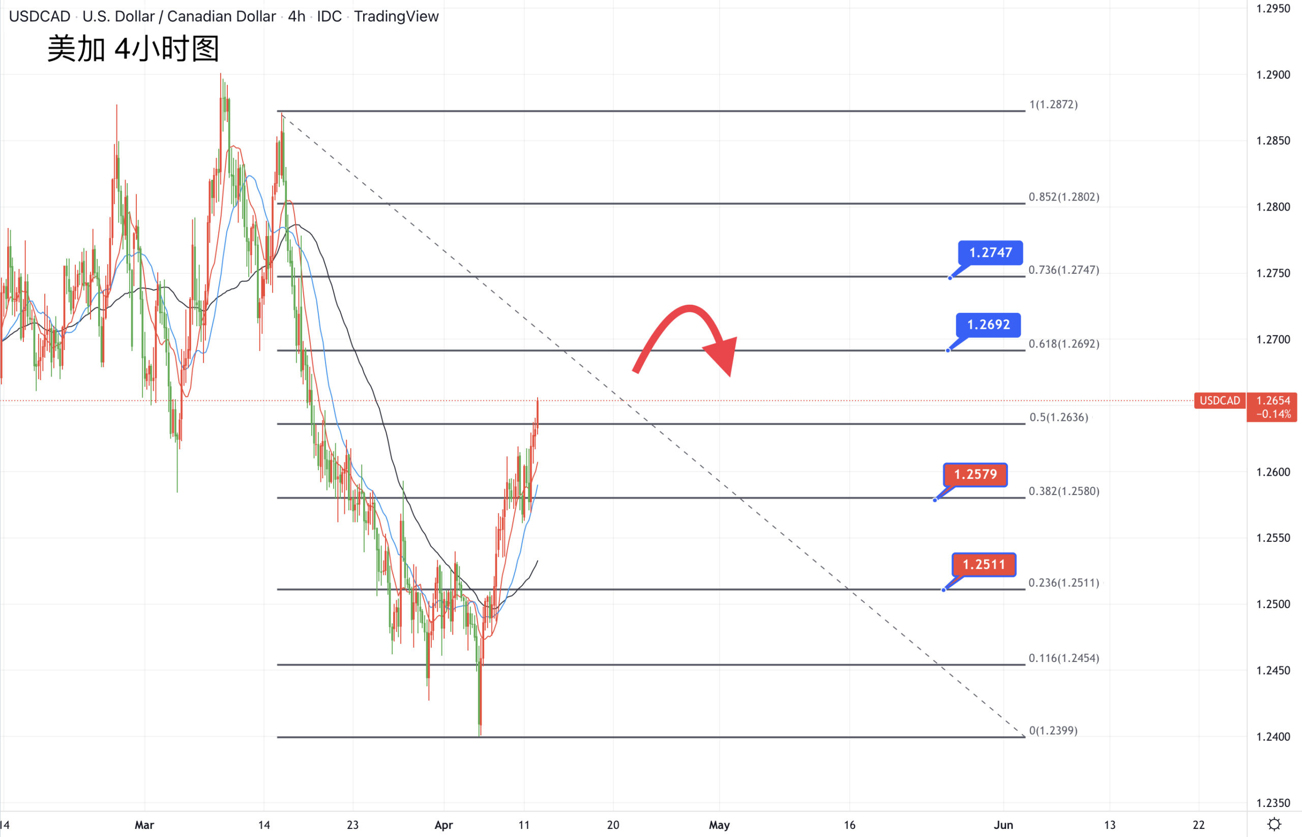 美元兑加元昨日盘中震荡走高,在20日均线继续提供支撑下扩大反弹,今早上市1.2650上方,刷新3月17日以来的高位,当前位置曾是前期支撑现可能转为阻力,尤其留意1.2680附近的阻力。