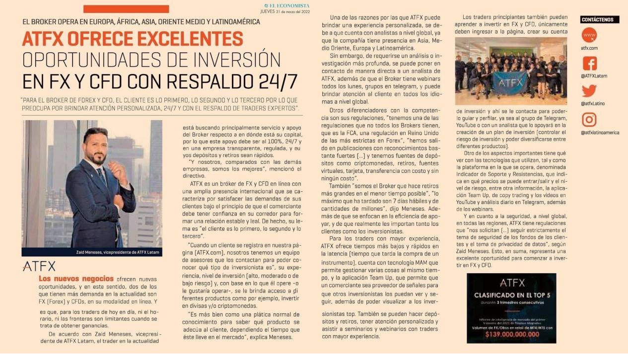 作为一家全球领先的差价合约经纪商,ATFX以卓越的分析见解,直击投资者的观点得到了全球众多权威媒体的关注。《金融时报》、《泰晤士报》等行业知名媒体都曾对我们进行报道。并且,在2022年早前,ATFX因出色的投资者教育还受到了拉丁美洲最大报纸Publimetro的关注,对我们进行了三期追踪性的报道。该报纸一经发售,瞬间在拉丁美洲各个国家传播开来,也正是因为这一系列高宣传品牌理念的溢化引起了投资者和媒体关注,为ATFX在拉丁美洲的发展奠定了强有力的基础。
