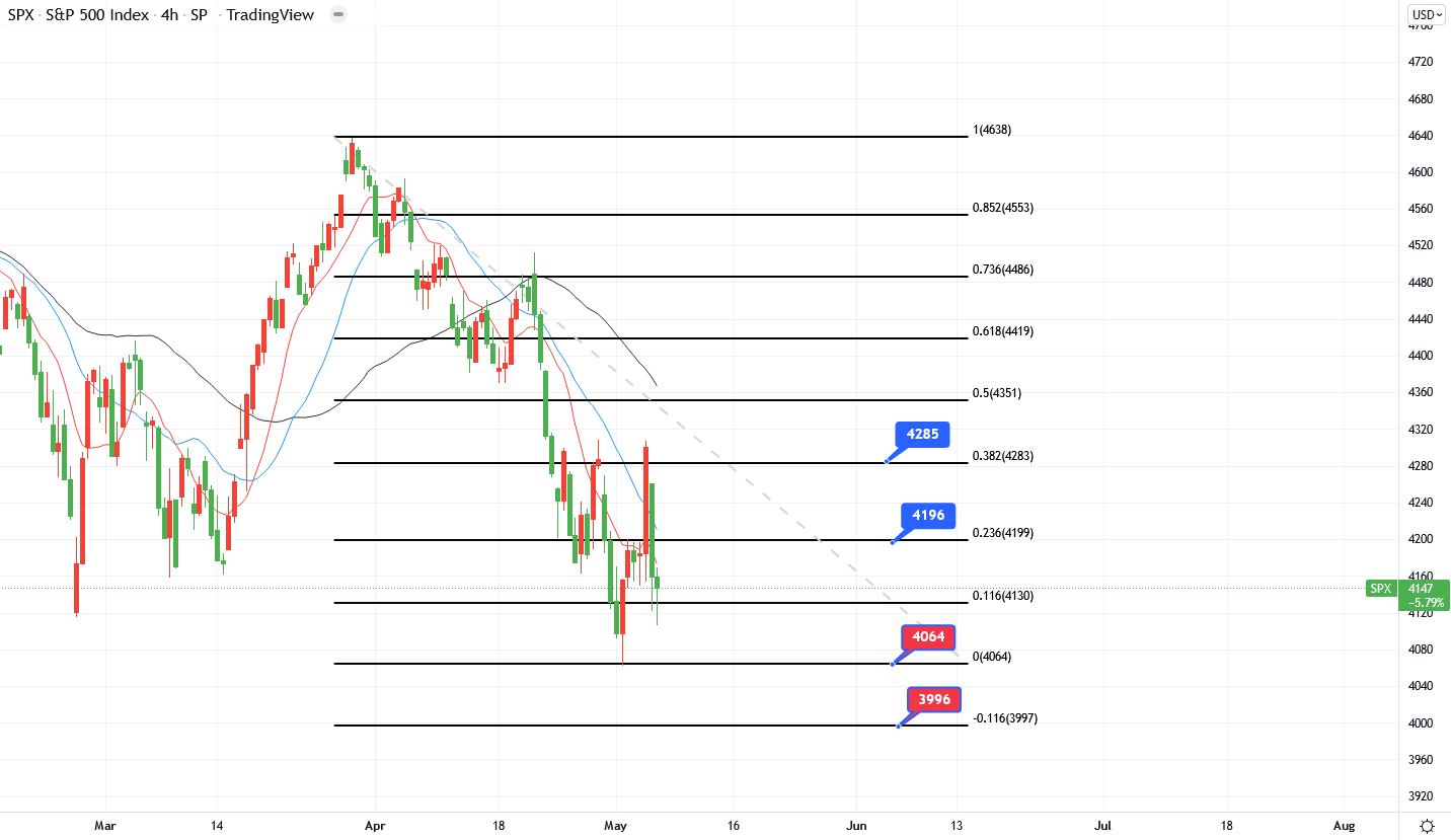 美国国债收益率升至多年新高,市场再现恐慌抛售,标普500指数重挫153.3点,跌幅3.56%。4200关口重新转为了阻力,所以关注今晚非农后市场情绪是否依然疲惫,不排除指向本周早些时候的低位在4063附近。
