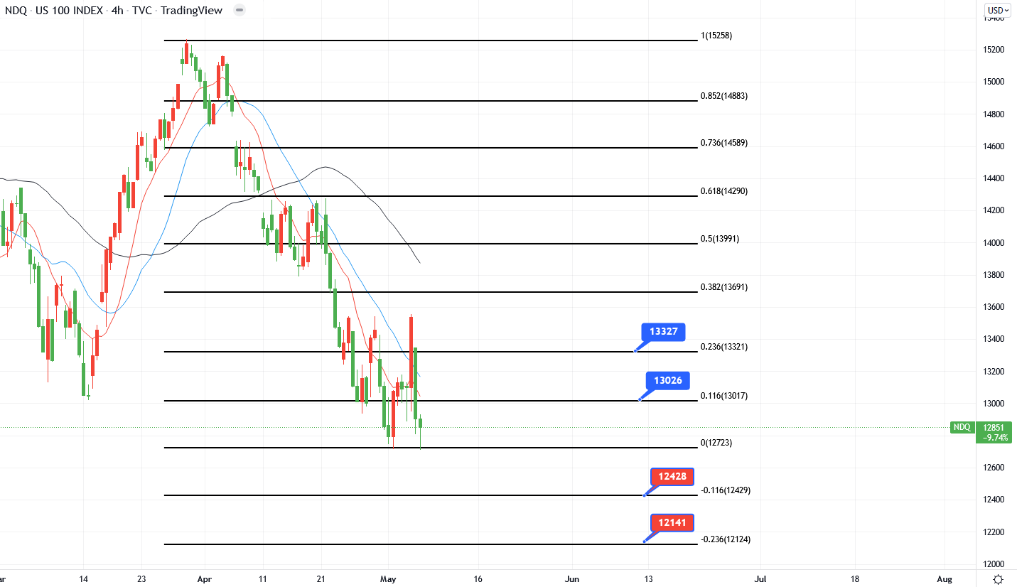 纳斯达克指数大跌跌幅达4.99%,创下自2020年6月以来的最大单日百分比跌幅,且收在2020年11月以来最低,跌破13000关口后当前维持在本周低位附近,如果可以获得支撑将缓和下行,但看今晚非农报告是否会超预期疲惫。