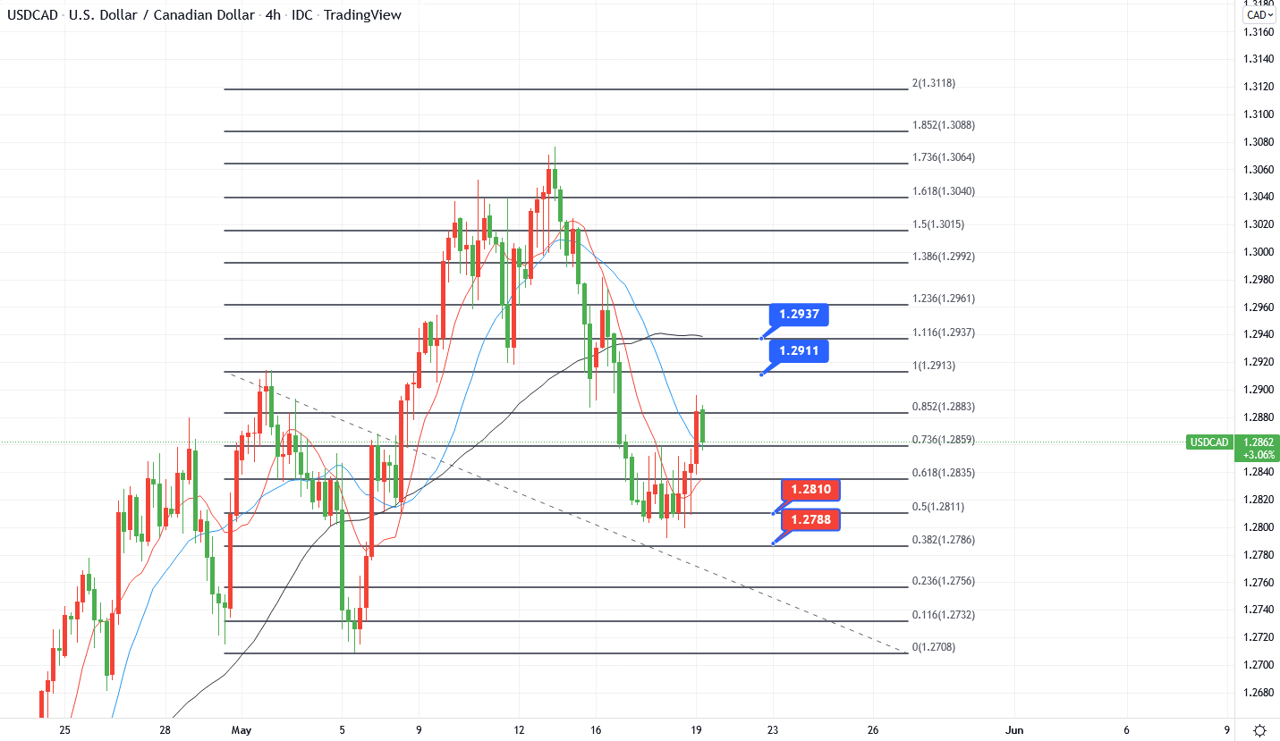加拿大4月通胀年率刷新31年高位达6.8%,略高于预期,不过国际油价向下未能支撑加元走势。美元兑加元昨日止步三连跌并录得近两周最大涨幅,不过留意技术上任何向1.29关口上方发起测试都可能遭遇阻力。