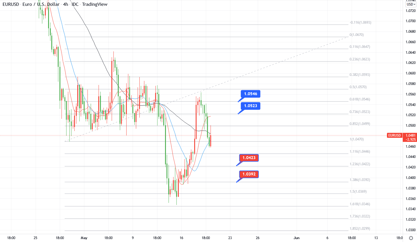 欧元区4月通胀率下修为7.4%,仍为纪录高位,不过欧元仍要受阻于美元的反弹,从一周高位回落回吐前日大部分涨幅。今早走势稍微回顺,短线可能重回1.05关口上方,不过看今晚欧央行会议要能否释放更多鹰派信号帮助反弹。