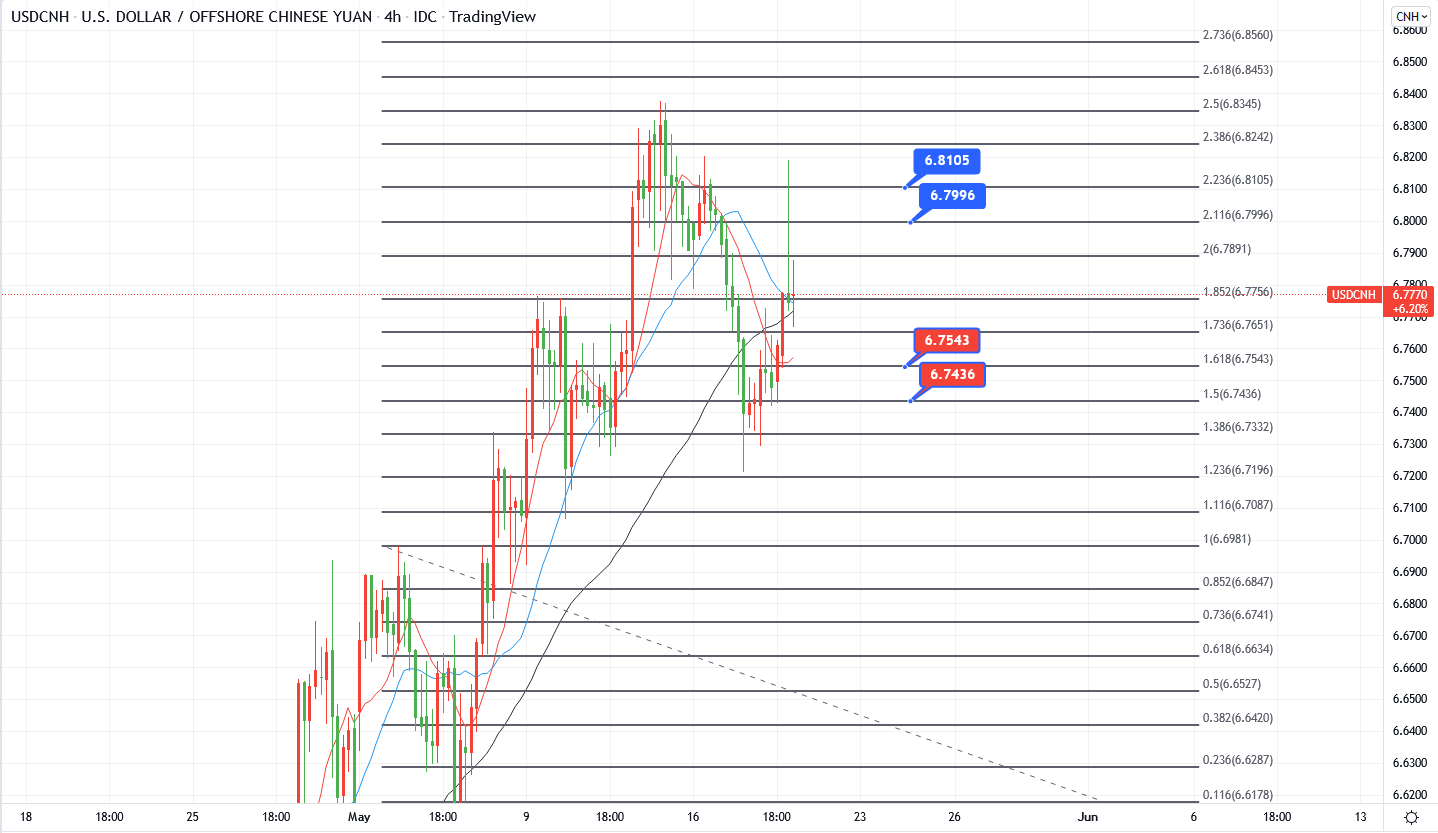 美元兑人民币昨日随美元启动反弹止步三连跌,今早再次测试昨日高位6.78上方之后见阻力,突破后才有望继续看向6.80为目标,同时4小时图也显示昨日冲高回落,当前需要捍卫20均线才能继续寻求反弹。