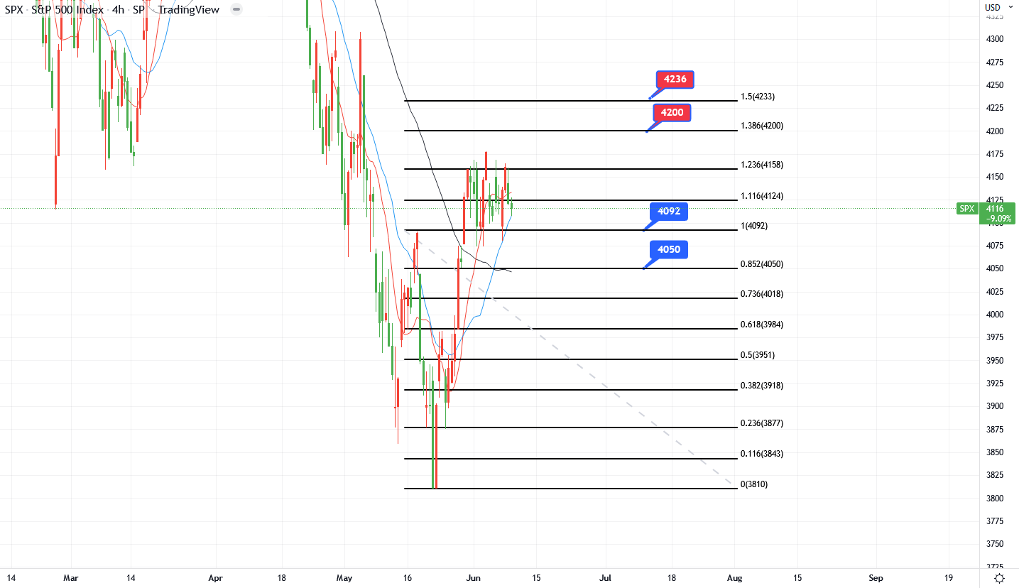 随着市场情绪转为谨慎,标普500指数昨日下跌1.08%,完全回吐前两日的累积涨幅,当前测试着4小时图的20均线,是否跌破决定会否继续下试4100关口下方的支撑。