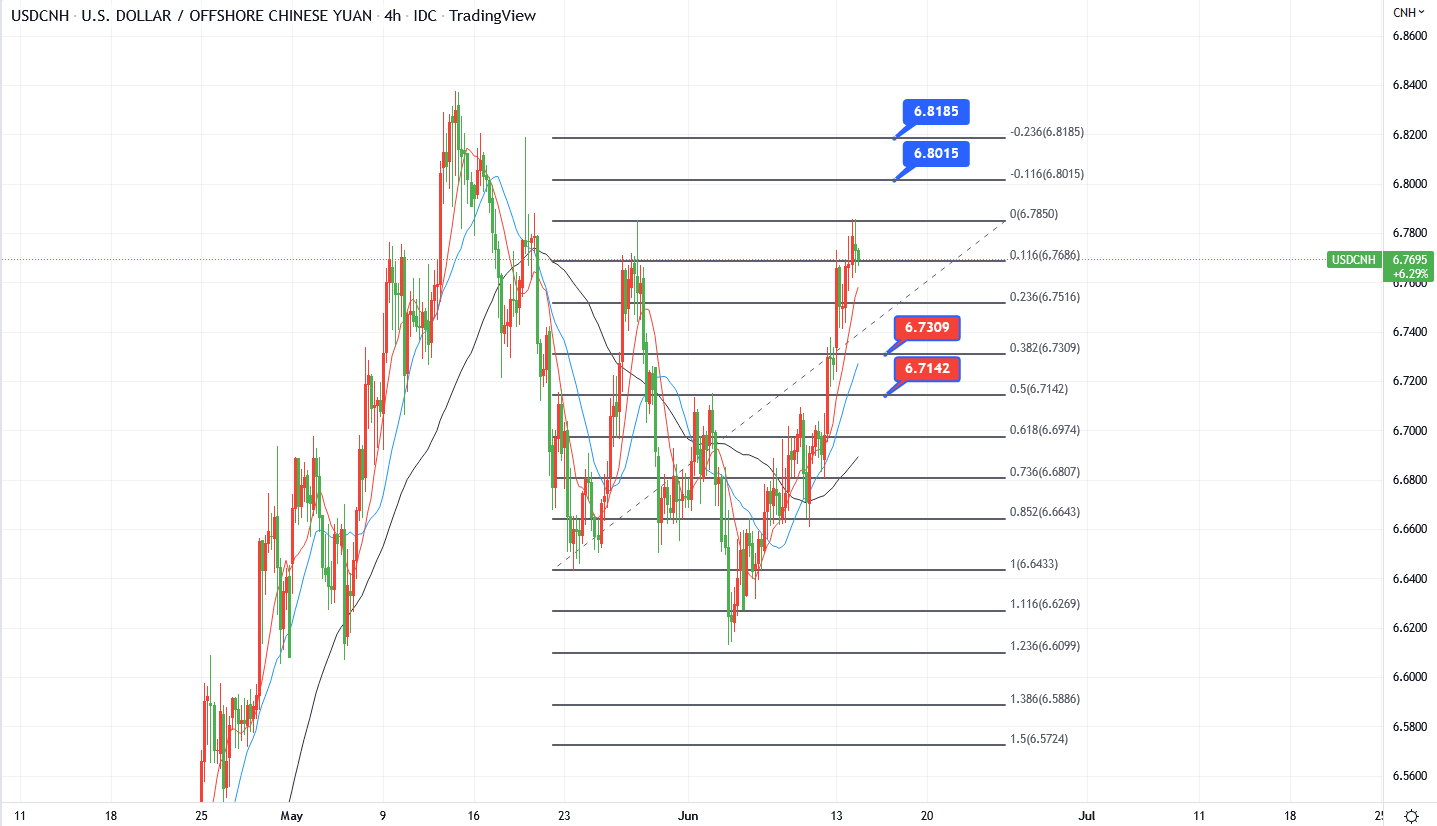 美元兑人民币继续创出连涨,当前正好触及5月底的高位,所以在6.7850附近出现了徘徊,如果技术上再度发挥阻力,那么连涨势头可能迎来调整,但如果有机会突破则继续看向6.80关口上方。