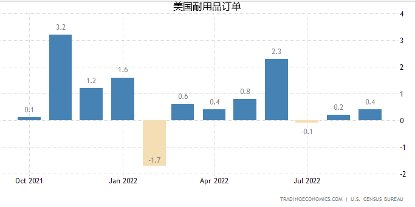 预计10月耐用品订单月率录得0.4%(和前值相同),核心耐用品订单月率有望摆脱负增长,但预计录得零增长。