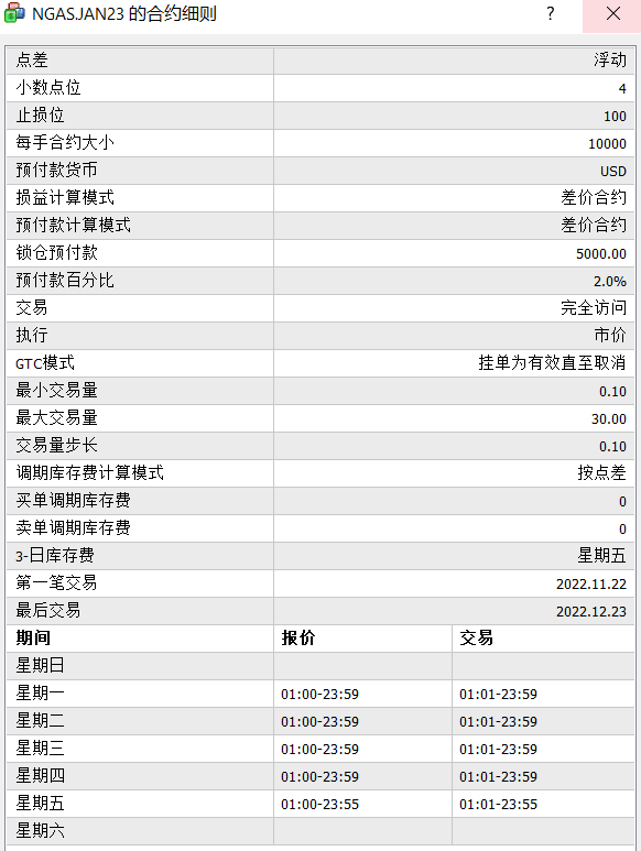 在平台上的合约细则中,也可以查看到美国天然气期货合约到期日,详细如下图: