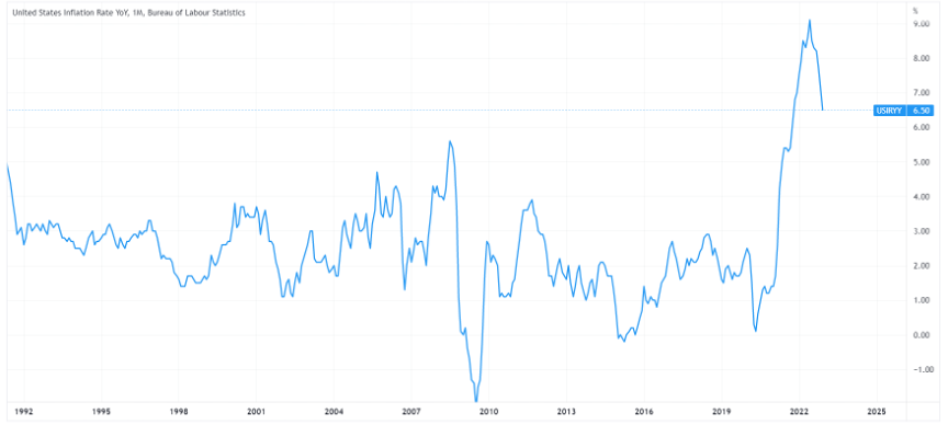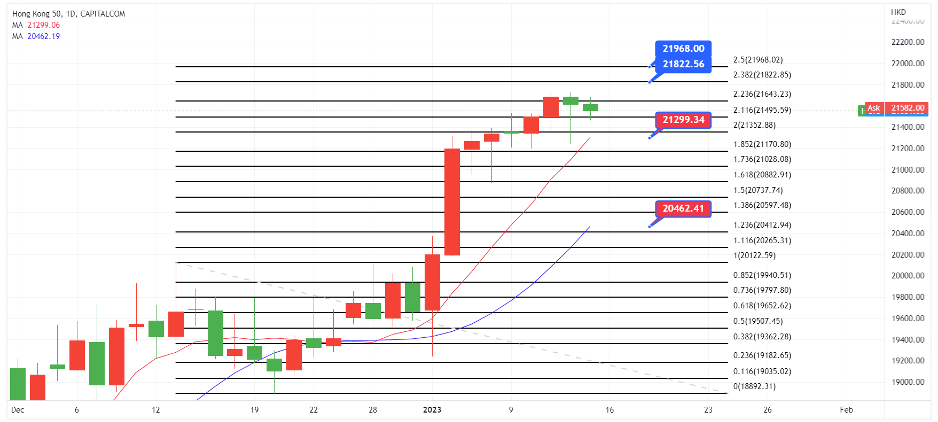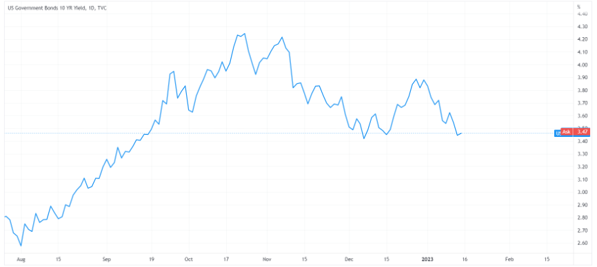 美国最新的通胀数据显示通胀压力降温,美国12月整体通胀率6.5%,而之前为7.1%, 美国12 月核心通胀率5.7% 对比之前的6%。市场对下个月加息25个基点的预期从77% 飙升至95%, 接近充分相信下月加息仅25个基点。通胀放缓及预期美联储加息幅度收缩, 提振了市场参与者对美联储官员可能在下一次(2月1 日)政策会议上不那么激进地加息的希望, 为股票投资参与者保持持仓意愿,为隔晚美国三大指数带来平稳, 唯独受利率走向影响的纳斯达克指数跟道琼斯工厂平均指数录得0.64%升幅。在周四的美国股市交易中,道琼斯工业平均指数上涨 217 点或 0.6% 至 34,190,标准普尔 500 指数上涨 13.6 点或 0.3% 至 3,983.2,纳斯达克综合指数上涨 69.4 点或 0.6% 至 11,001.1。美国债券市场方面,美国10年期国债利率处于 3.444% 的 5 周低点, 这因素支持股市在过去一段时间表现上升。