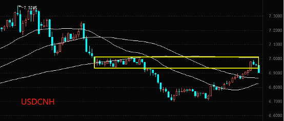技术角度看,去年12月份的震荡范围形成阻力区间,上限7.012,下限6.9393。今年一月中旬开始的反弹,涨至6.9896之后遇阻回落,处于阻力区间之内,预计本轮下跌将持续较长时间。第一目标位在6.8000,之后是创出年内新低。最大的风险来自于下周的大非农,需要提防非农数据超预期利好,这会导致美元指数大反弹,离岸人民币汇率也将随之大涨。