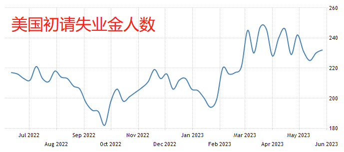 美国至6月3日当周初请失业金人数,将于北京时间本周四20:30(6月8日)公布,前值为23.2万人,尚无预期值。考虑到美国5月的失业率从3.4%升高至3.7%,同时就业人口从29.4万人升高至33.9万人,预计申请失业金的人数将有所升高。从历史曲线看,最近一年,美国的失业金申领人数有缓慢上行趋势,二季度的申请失业金人数一度突破24万。劳动力市场的变动将对美联储的货币政策产生深渊影响,如果劳动力需求持续旺盛,在6月份暂停一次加息之后,7月份的美联储利率决议将有可能重启加息。