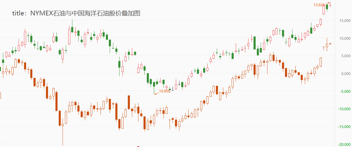 受沙特与俄罗斯宣布延长减产计划至年底的影响,中国海洋石油股价受提振,今日最高触及13.92港元(截止11:40),创出2020年1月9日以来新高。将中国海洋石油和NYMEX石油价格叠加后发现,两者保持显著共振性:当国际油价走强时,中国海洋石油的股价也会大幅走高。