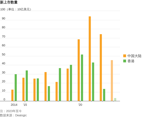 除了股市走弱影响成交量外,近几年的新股上市不再活跃,根据Dealogic的数据,今年到目前为止,在港上市的IPO规模总计仅有35亿美元,低于2022年的130亿美元。