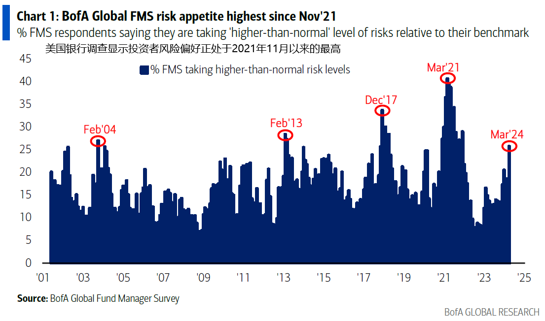 对应美股依然维持强势,本周发布的美国银行对基金经理的最新调查显示,投资者正处于风险偏好高涨的模式,资金大举抢购欧洲和新兴市场的股票,而非美国科技股。