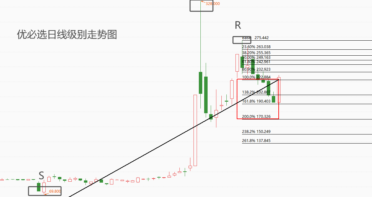 上图为优必选的日线级别走势图。优必选在2023年12月29日上市,距今不足半年,K线总量较少,技术分析的指导性不足。另外,今年3月5日以前的股价和之后的股价走势,形成鲜明对比,前者缓慢的重心上移,整体呈现出震荡特征;后者股价大幅拉升,单日振幅一度高达87%。技术角度看,昨日的亮眼财报导致今日股价大涨,破坏了本周以来的下跌状态,市价重新向上试探黑色回归线。下周走势较为关键,如果再次出现长阳线,则今日低点即为下一轮上涨波段的起点;如果出现决定性阴线,则短期跌势延续,第一支撑位202.87港元,第二支撑位190.403港元,第三支撑位170.326港元。以目前的技术形态和大盘走势看,第二种情况出现的概率较高。