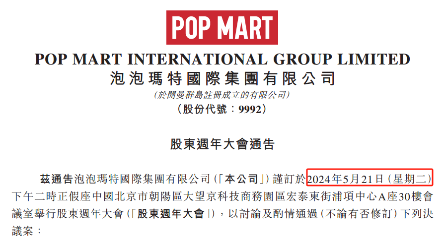 根据4月25日发布的公告,泡泡玛特的股东周年大会将在5月21日(星期二)举办,届时将会对2023年全年的业绩数据进行全面审核和解读,并宣派2023年年度股息。据我们早先发布的财报分析文章:泡泡玛特2023年收益63.01亿元,相比2022年的46.17亿元,猛增36.5%;毛利润38.64亿元,毛利率61.32%,利润空间极其丰厚;基本每股收益0.81元人民币,以当前的市价28港元(1港元对应0.9071人民币)计算,市盈率31.36倍,处于中等水平。核心业绩指标显著提高,2023年业绩超出市场预期并对股价形成显著提振。新一轮股东周年大会将把股票市场的目光重新引导至亮眼年报方面,大会期间股价或出现二次走强。