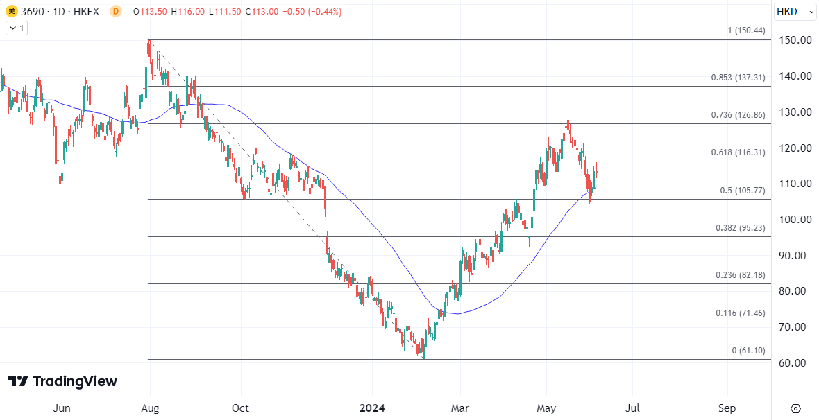 在盈利及利润率持续改善的预期下,今年以来美团股价跟随大市处于升温的状态,在2月5日创下61港元的低位后,迄今已经回升超过90%,期间在5月中旬曾创下去年9月以来的最高位。