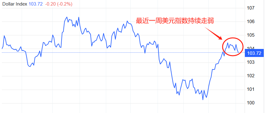 2016年大选时,宣布特朗普胜选后,美元指数短暂下跌后剧烈上涨。所以,特朗普入主白宫,对于美元指数来说可能是利多消息,这也符合通胀反扑后美联储提前终止降息的逻辑。然而,过去一周,美元指数持续下跌,市价从104.6下跌至当前的103.7,同样意味着特朗普的胜选可能下降。