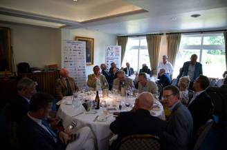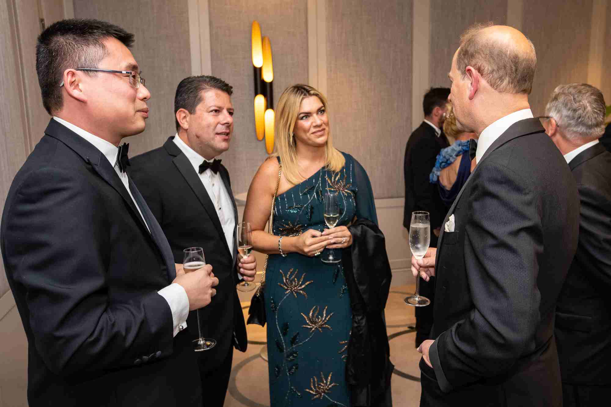 [从左至右] Weems Chan(ATFX全球市场和品牌总监)、张伟强(ATFX英国总经理)、 Ergin Erdemir(ATFX英国市场总监)、威塞克斯伯爵爱德华王子和Forfar 爱德华王子和ATFX主要领导在宴会上进行交谈。