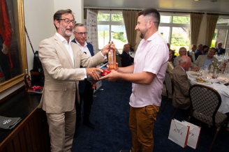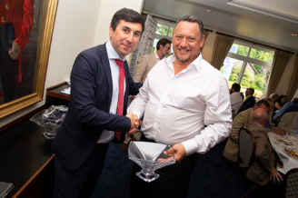 2021 年 9 月 29 日,在温特沃斯高尔夫俱乐部宴会厅举行的颁奖晚宴上,英国韦塞克斯伯爵爱德华王子与ATFX团队进行交流。
