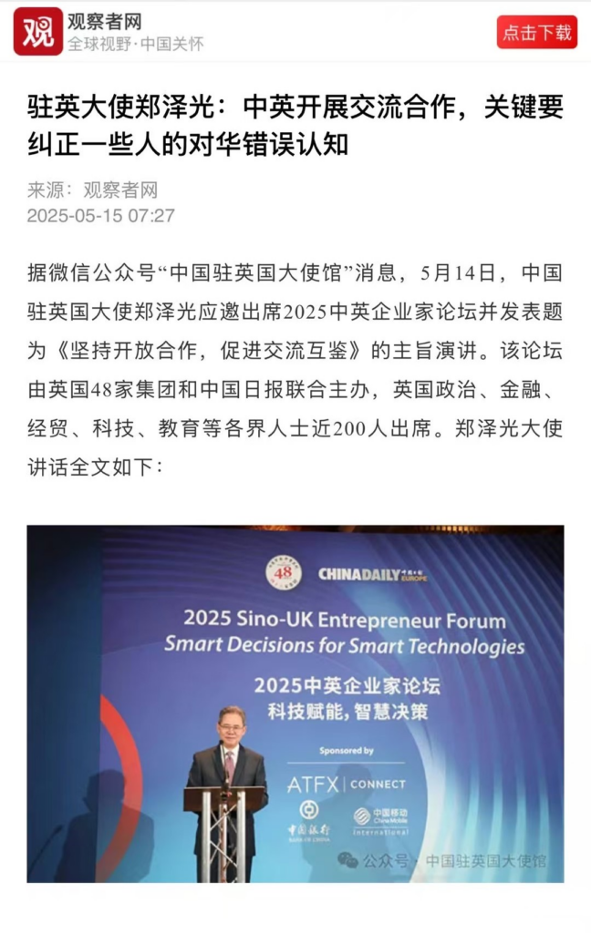 5月15日,由ATFX Connect赞助的2025中英企业家论坛在英国伦敦成功举办,这一盛事吸引了国内众多权威媒体的关注,并获得了包括人民网、新华社和中国日报在内的23家媒体的广泛报道。