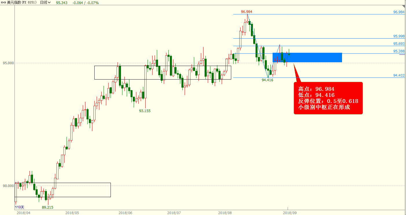- 美指日线级别正在形成新的震荡中枢,短期内看跌