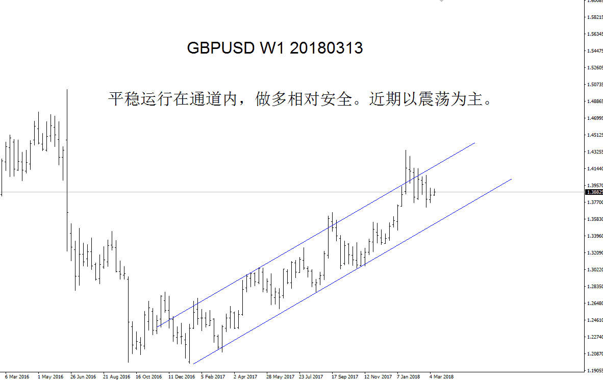 如图中所写,磅美上升通道非常完美,虽然目前报价不在下轨附近,但多头走势非常明显。先前提到的特里莎梅否决欧盟的脱欧条款对英镑的打击巨大,但近期已经没有相关消息发布出来,想来应当是在进行进一步磋商。从经济数据来看,英国的宏观经济非常强劲,英镑绝对是一个未被市场所发掘的潜力品种。