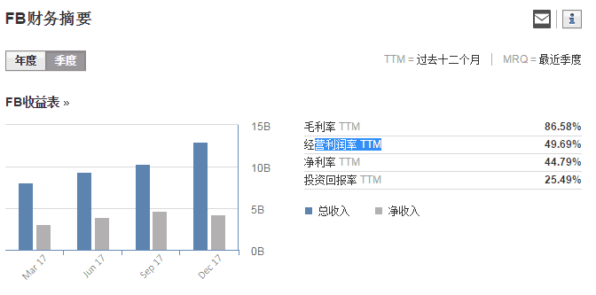 基本面来看,脸书毛利率86.58%,净利率44.79%,最新总收入超过120亿美元。如果不是因为泄露用户隐私数据,这样的基本面是相当好的投资标的。