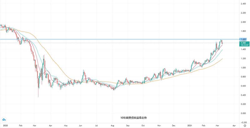 市场预期美国2月CPI同比增速将录得1.7%,较1.4%的前值加快回升,核心CPI同比则维持在1.4%的增长。通胀数据公布前夕,10年期美债收益率持稳在1.6%高位下方。今晚低于预期的CPI可能会抑制收益率,反之如果证实通胀加快回升甚至超过预期,将助长通胀预期及美债收益率的继续上升。